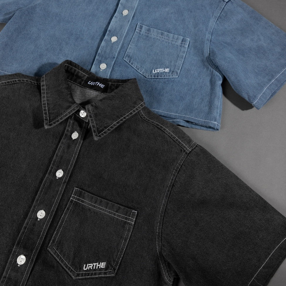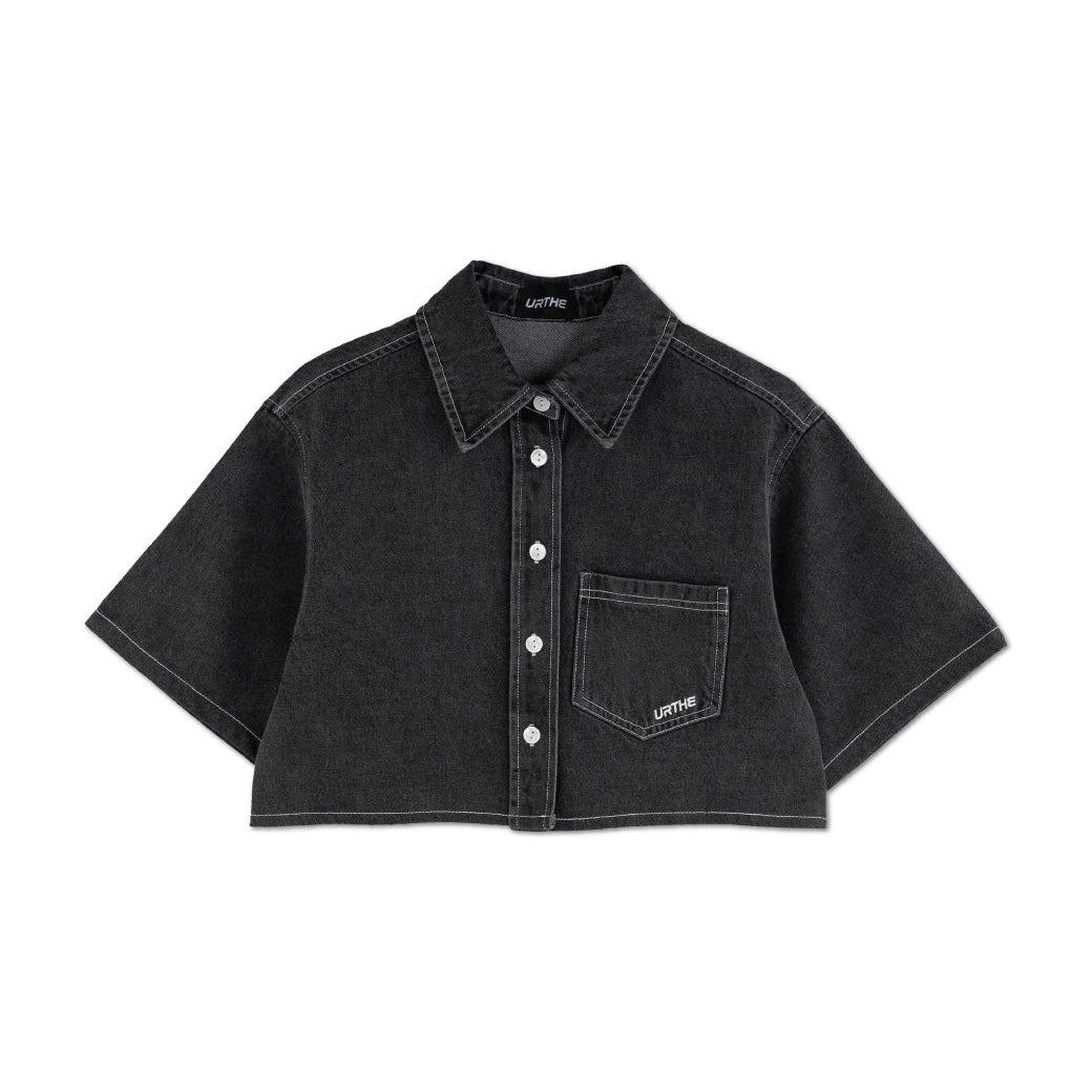 เสื้อเชิ้ตยีนส์ แขนสั้น ทรงครอป