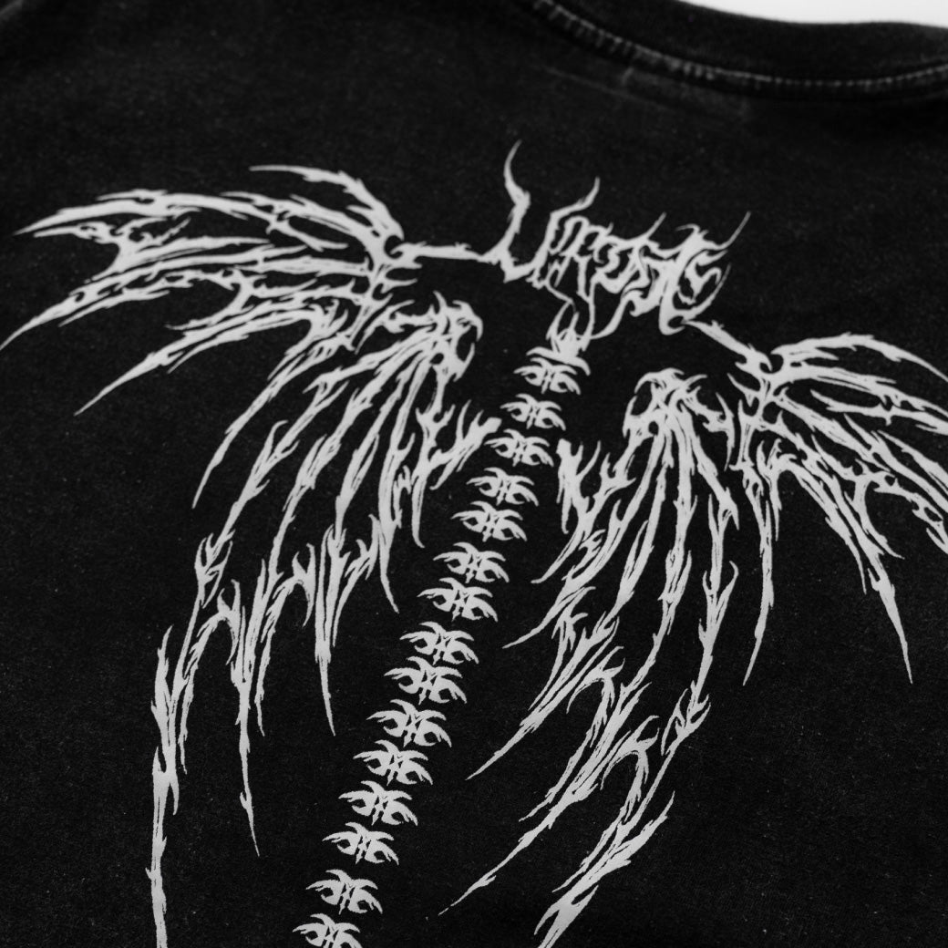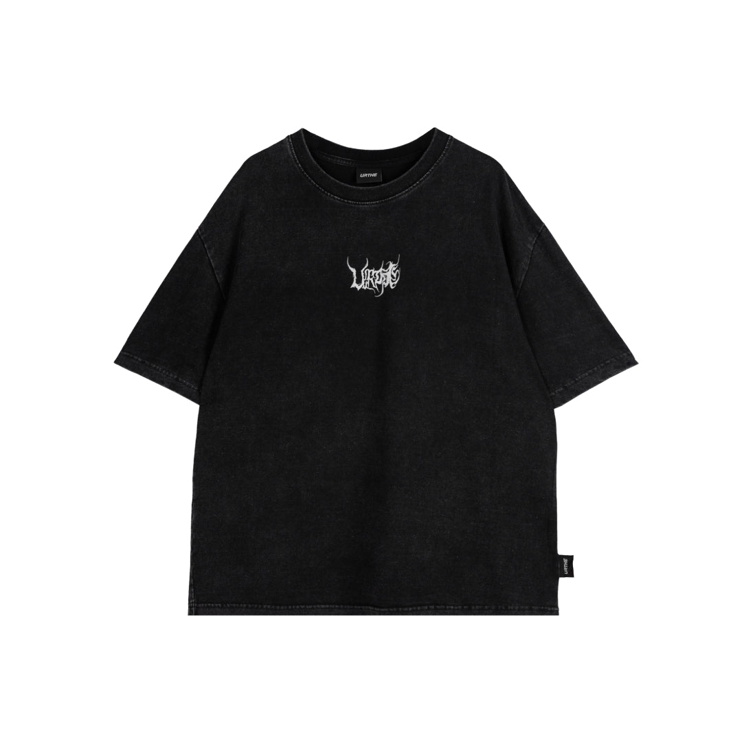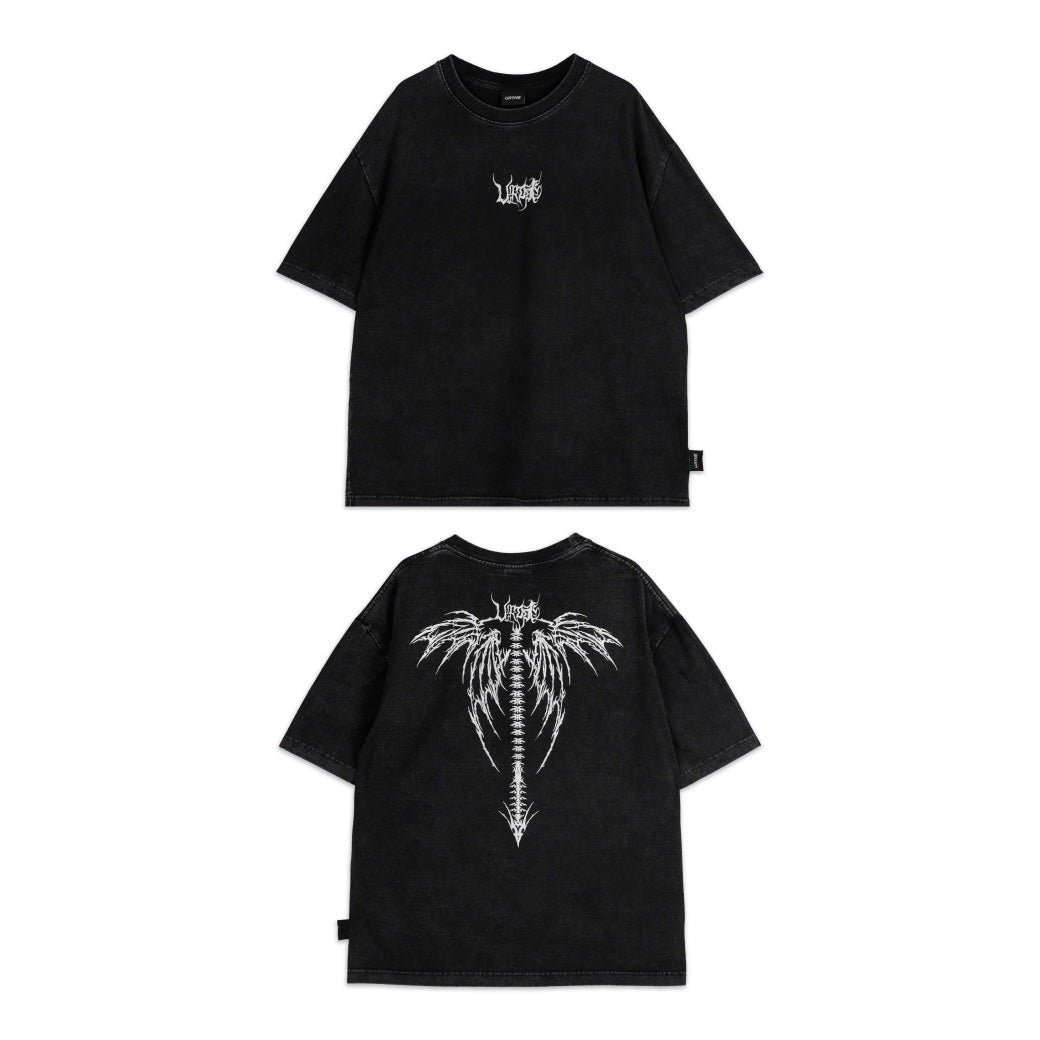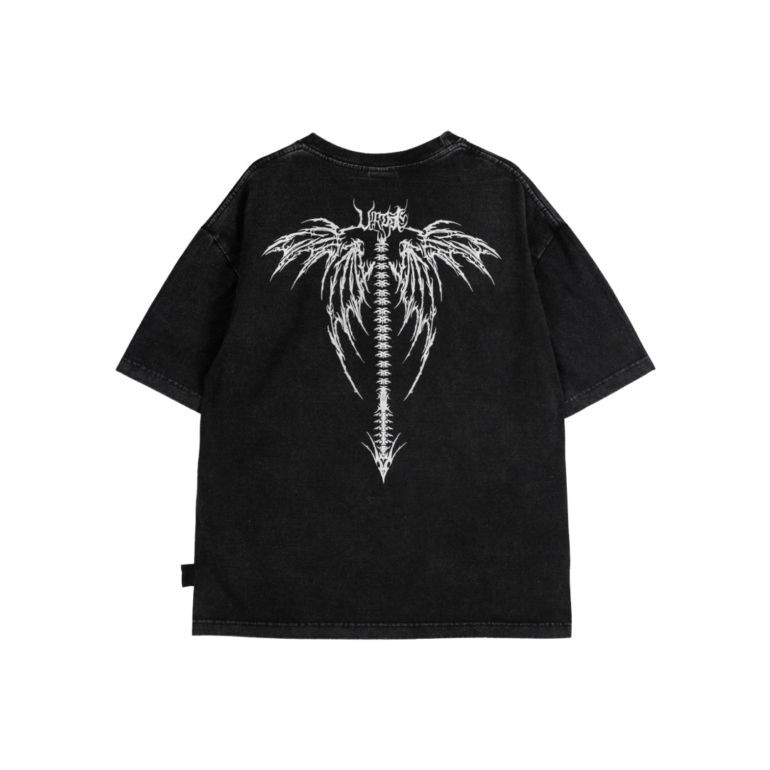 MY WING T-SHIRTเสื้อยืดเเขนสั้น ทรง Oversizeสกรีนลายหน้า-หลังฟอกสีทั้งตัว(เสื้อสีดำ)