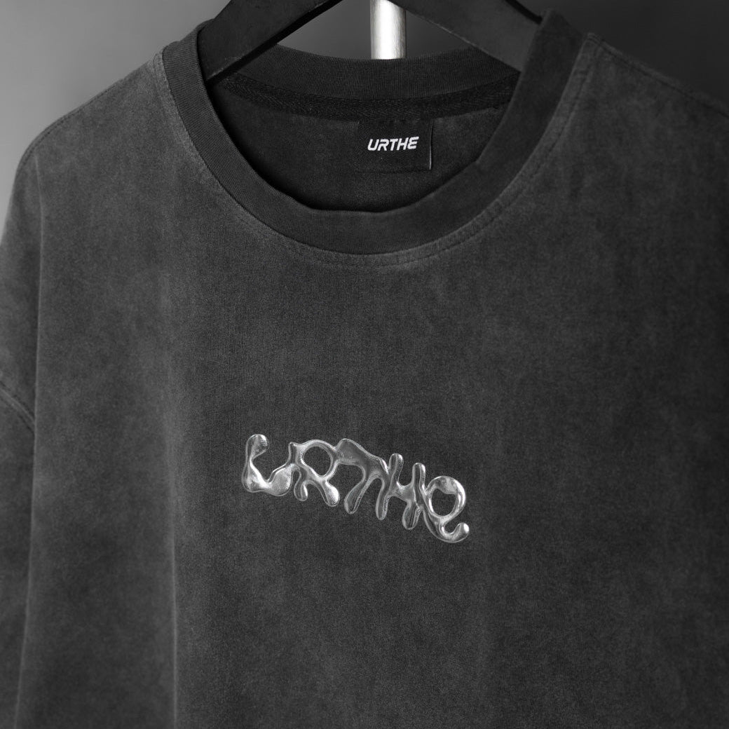 ACID LIQUID CHROMEเสื้อยืดเเขนสั้น ทรง Oversizeสกรีนลาย แบบ 3Dฟอกสีผ้า