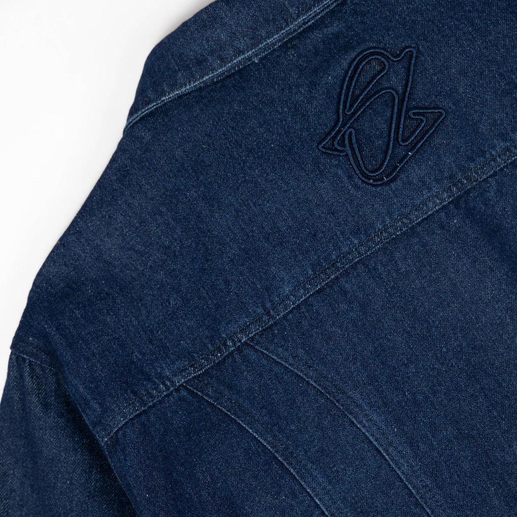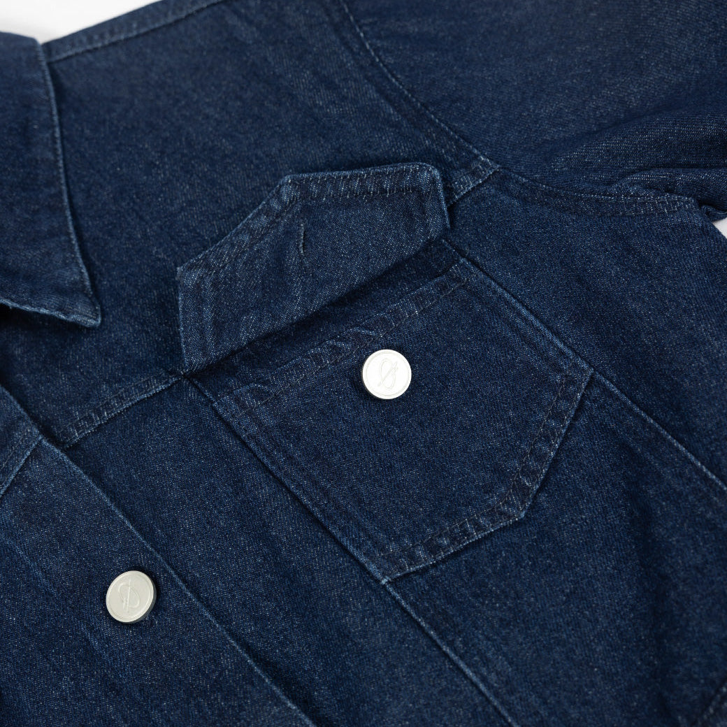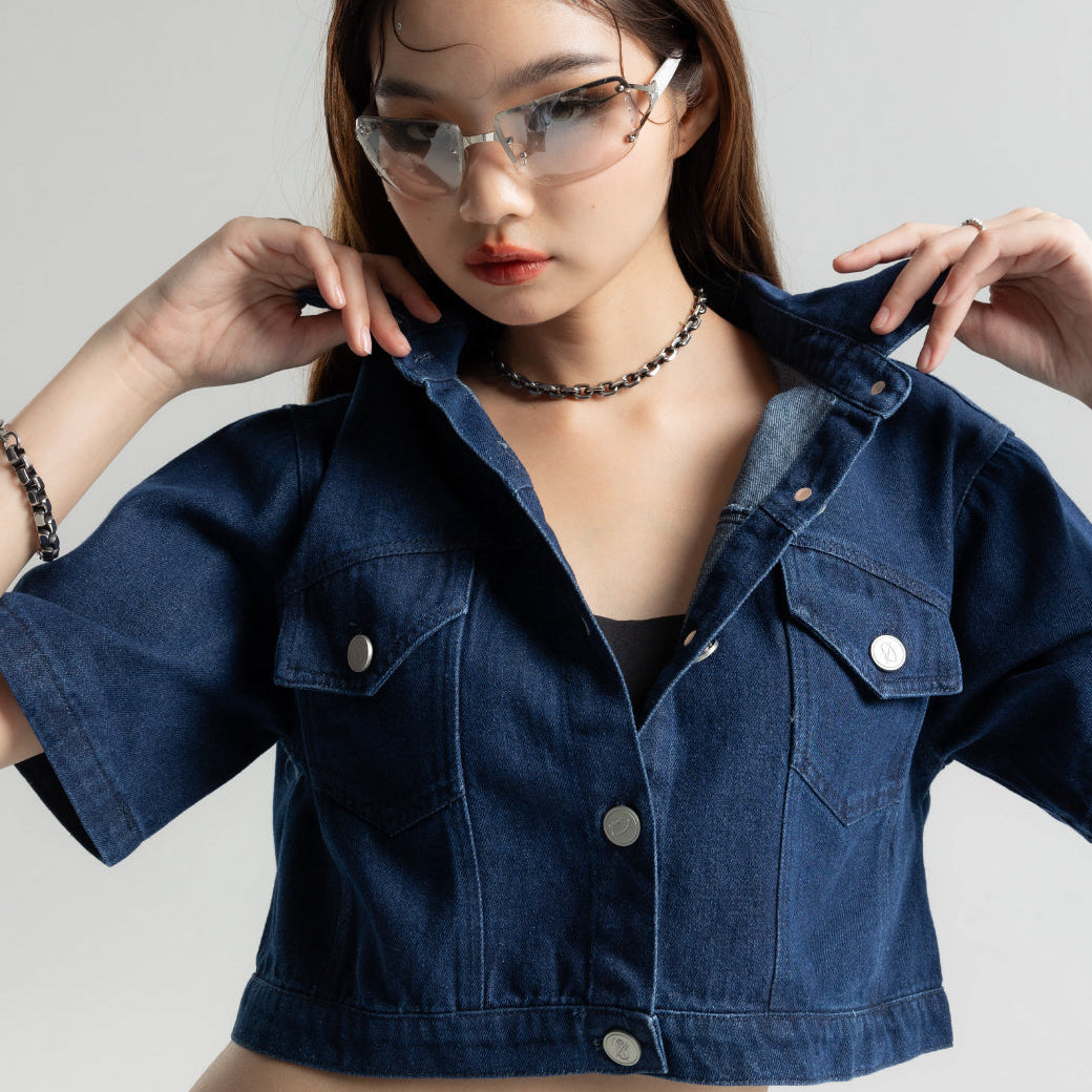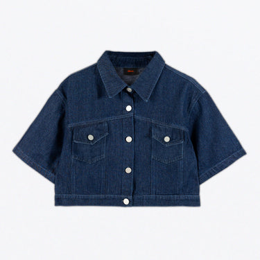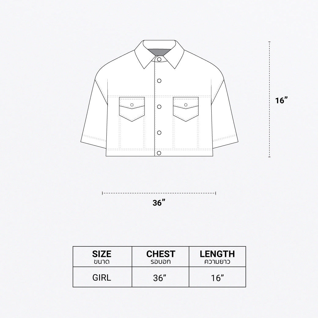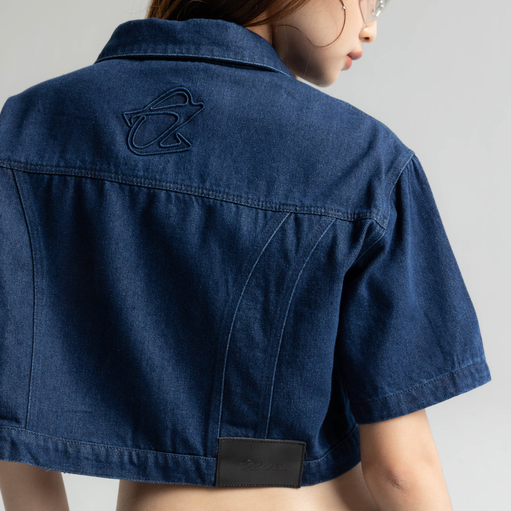 OZ STELLAเสื้อเชิ้ตยีนส์ ครอป แขนสั้นปักลายด้านหลังแบบ 3D