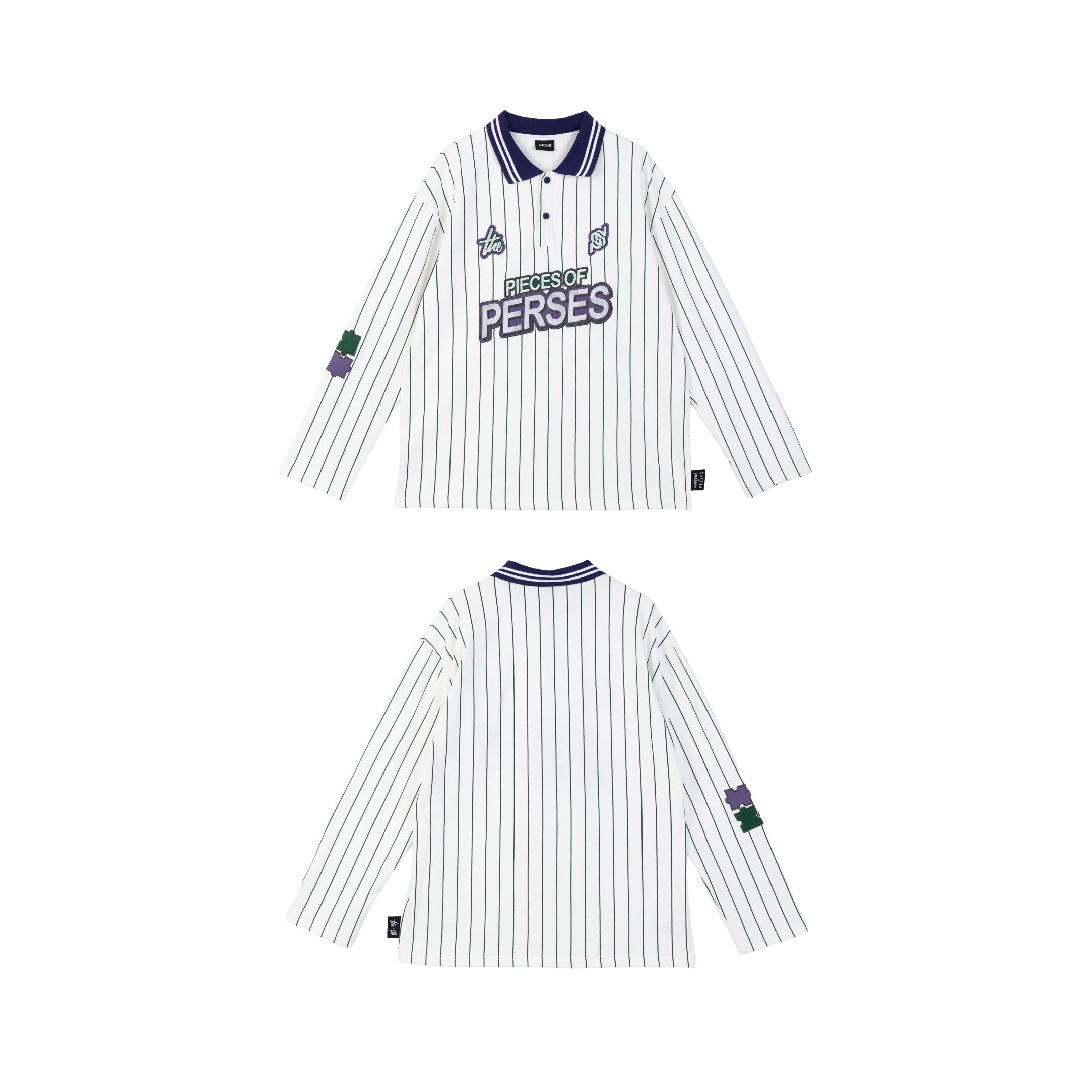 PIECES OF PERSES POLOเสื้อโปโลเเขนยาว ลายทางแนวตั้ง COLLECTION URTHE x PERSESปักลายกราฟิก ด้านหน้า-แขนเสื้อ