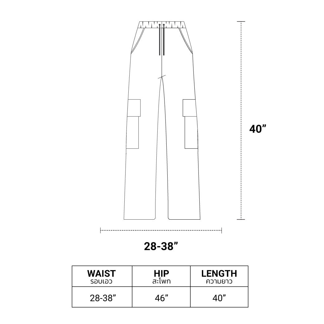 เอว 26-40 นิ้ว | สะโพก 42 นิ้ว | ความยาว 42 นิ้ว