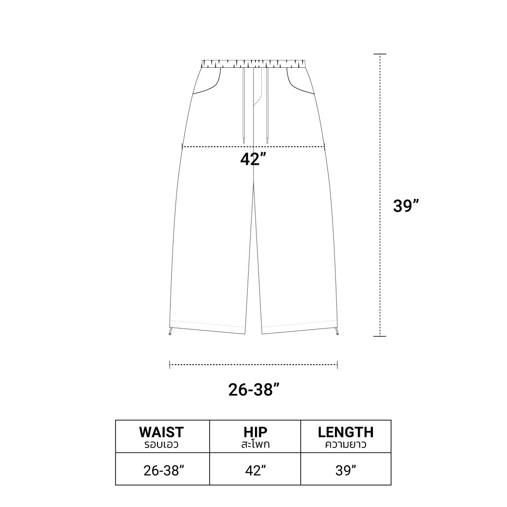 เอว 26-38 นิ้ว | สะโพก 42 นิ้ว | ความยาว 39 นิ้ว