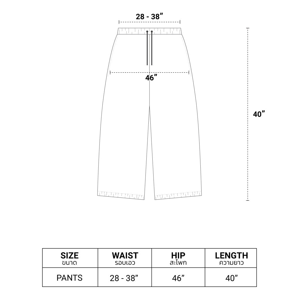 เอว 28-38 นิ้ว | สะโพก 46 นิ้ว | ความยาว 40 นิ้ว