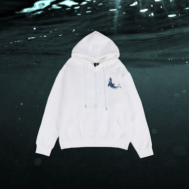 DEEPER WHALEเสื้อฮู้ด ทรง Oversizeปักลาย หน้า-หลังมีซิปด้านหน้า