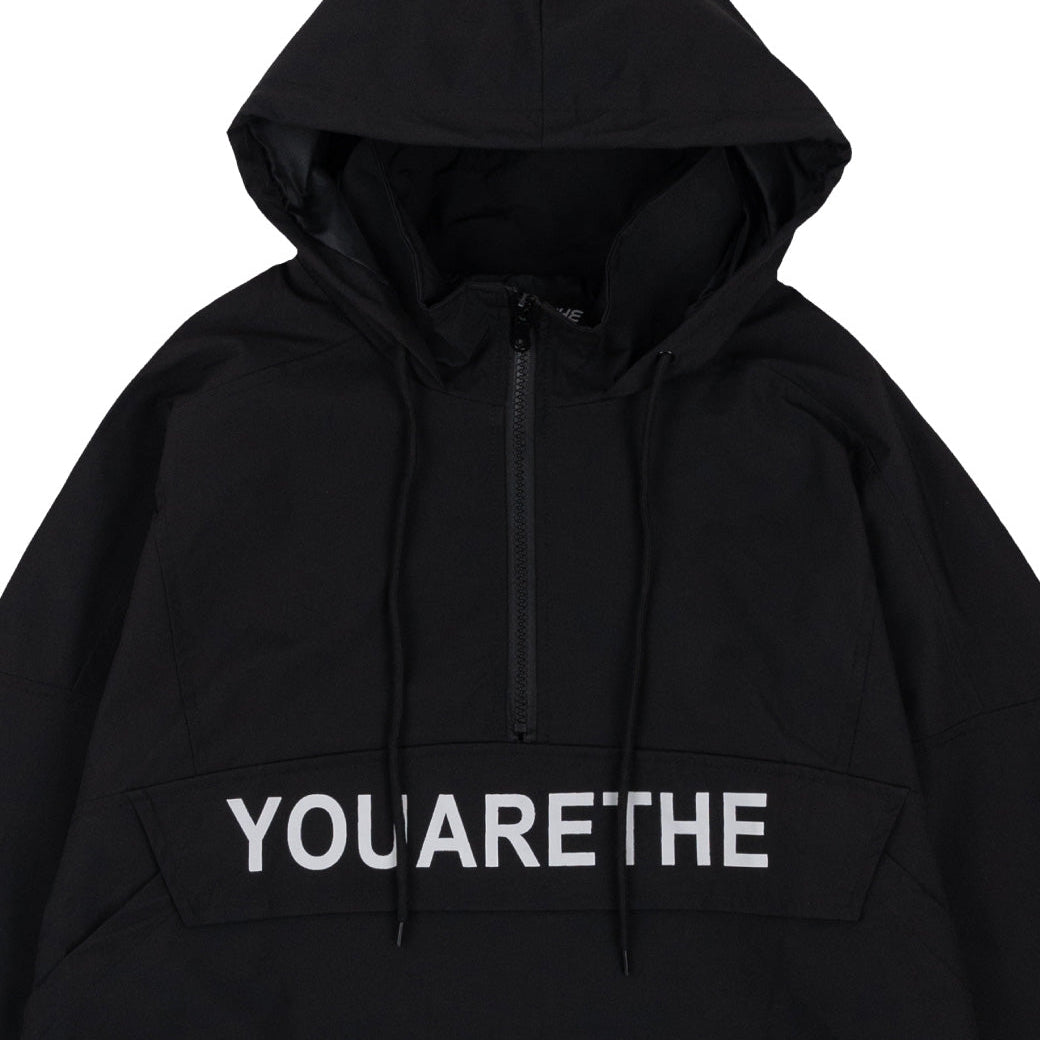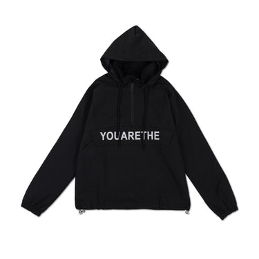 WIND BREAKERเสื้อแจ็คเก็ต มีฮู้ด ทรง Oversizeมีซิปด้านหน้า (Half Zip)สกรีนลายด้านหน้า